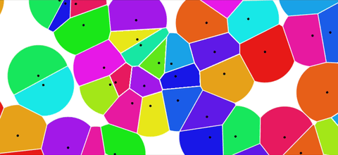 We'll be using the graph that I have attached in the beginning. Here's the codepen of the problem (it's the end result). To create the cells, we will be using the D3 Delaunay library (you could really choose any library you want. You're welcome to reinvent the wheel.. I'd rather not). This is not the whole code though.
